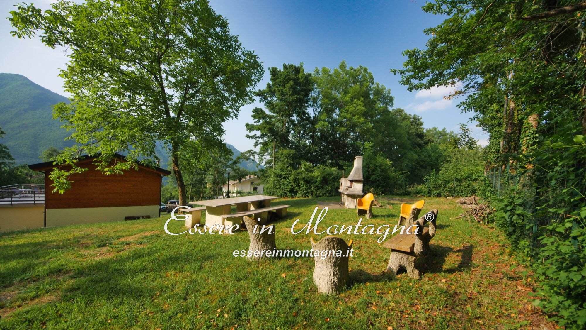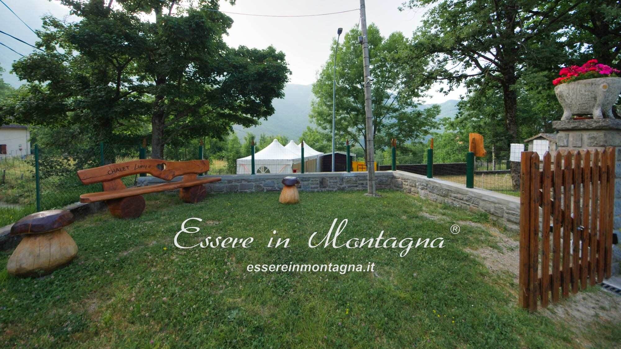 Il giardino è grande, curato, e su tre lati confina con il bosco.