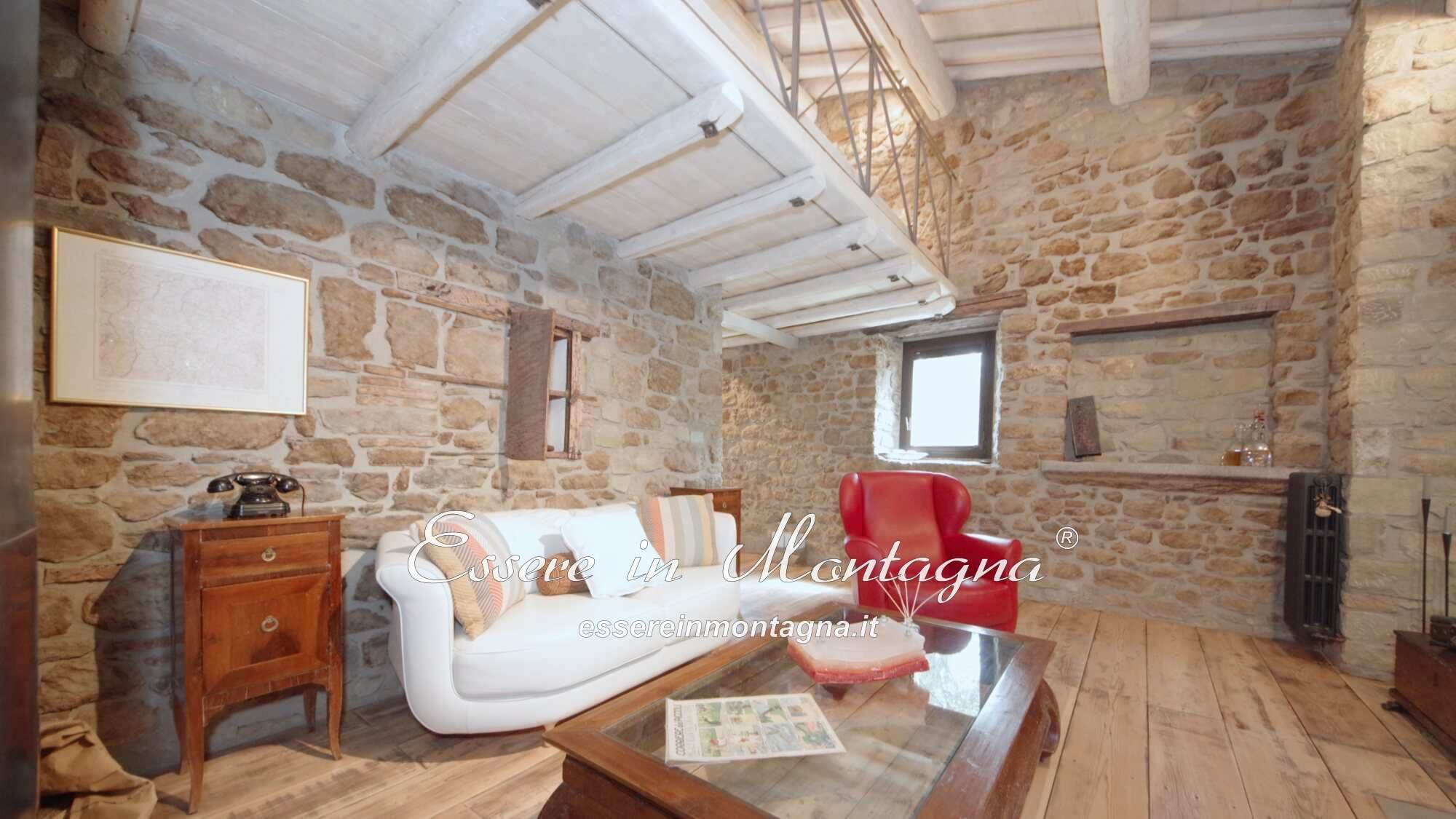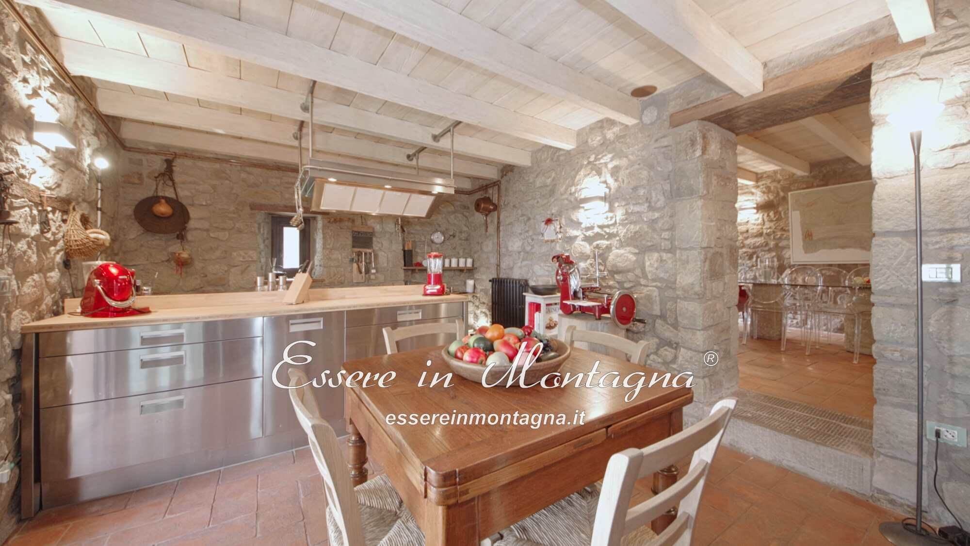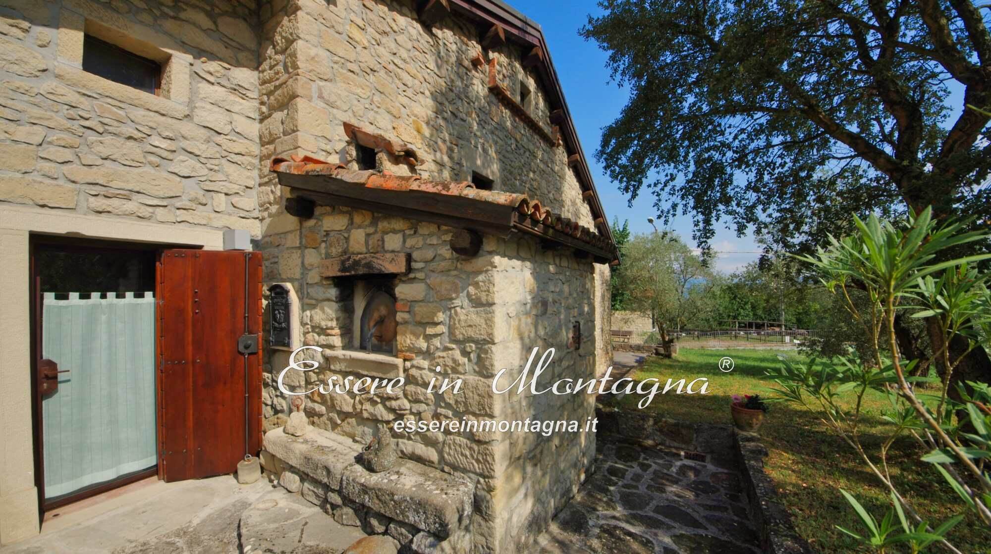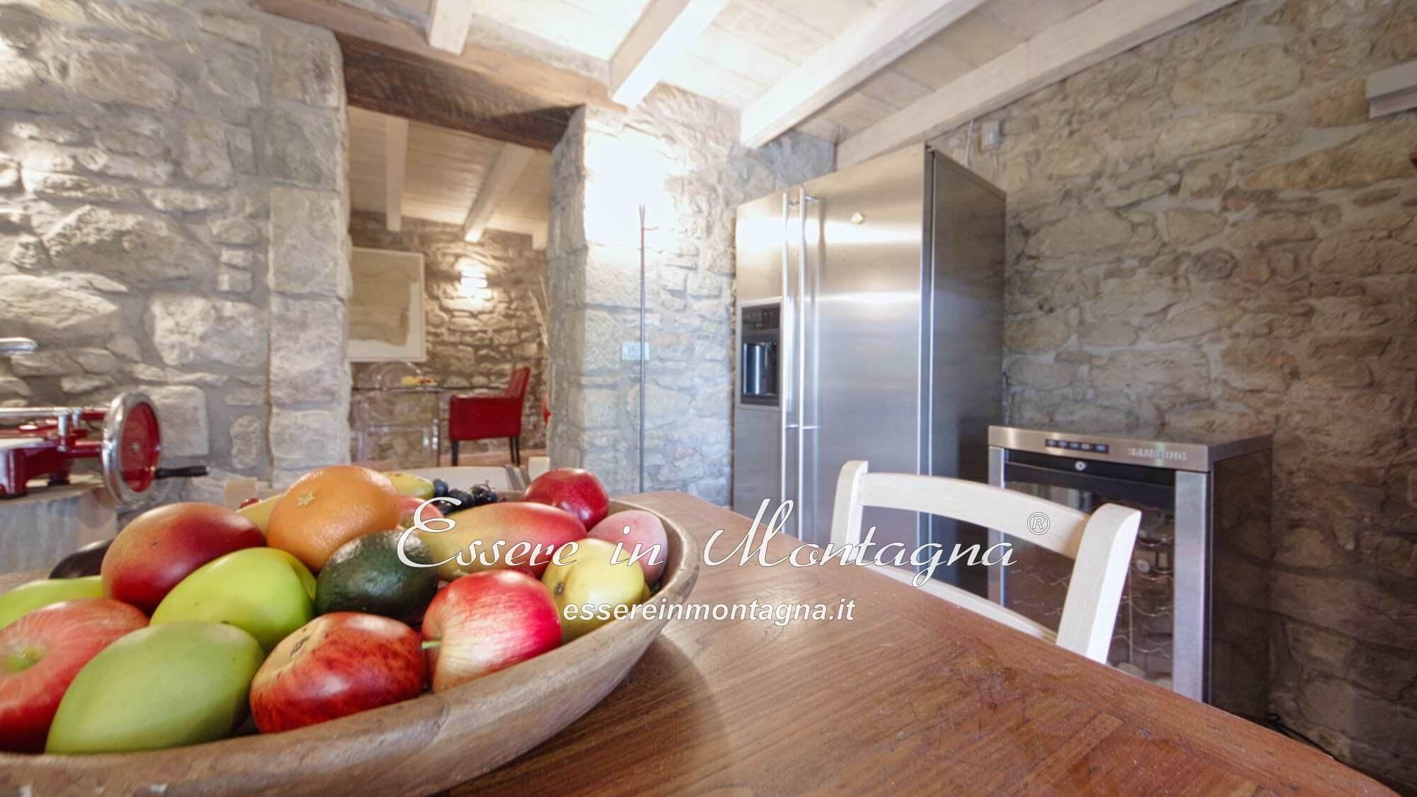 La casa di Giulia risale al 1619, lo dice un’incisione su un sasso del muro. È tutta in pietra a vista, ristrutturata con gusto e arricchita da dettagli preziosi, dentro e fuori. Tra gli esterni spiccano il forno per il pane, le rocce decorative e le essenze arboree scelte con cura.